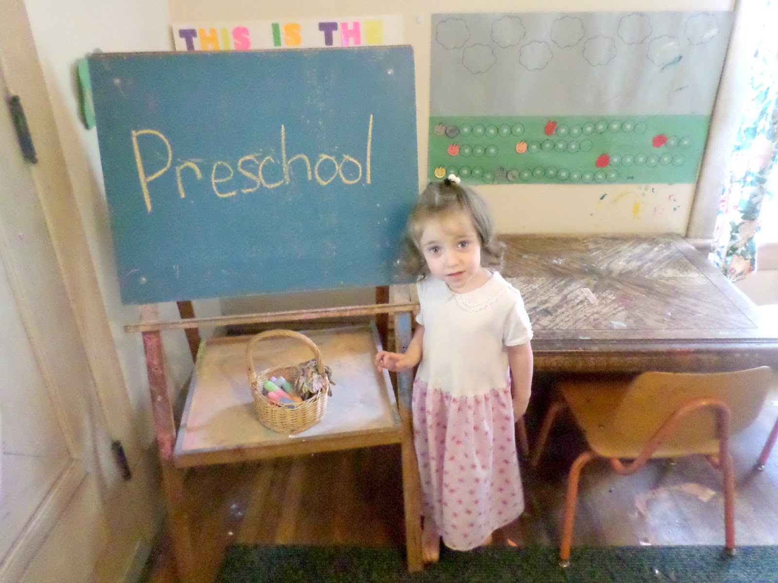 One of our traditions for the first day of school is to take pictures next to the easel/chalk board where I write what grades the girls are in. Today we didn't get to the pictures until later in the day, but, we got them done.