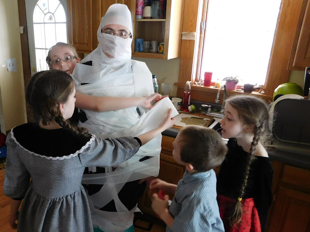 I guess we have a new annual tradition in our house. It is called Parent Trap Day. The children devise traps to catch the parents and then they wrap us up or otherwise trick us, and then try to get us to give into their "demands." I guess it was last year on March 6th that they did this. I have no clue how they remember the date, though I do remember them doing it.