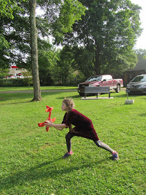 On Wednesday, we headed over to the park for the party. The children finished spending their summer reading dollars, chose their last free book, and then we got to have pizza and sundaes. Then the children and I played with Harold's plane, which he had "bought" with summer reading dollars earlier in the month.