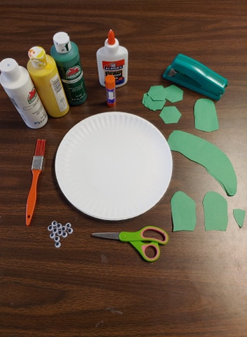 When the children came back from snack and gym, the paper plates were dry, so they were able to glue the scutes to the carapace.